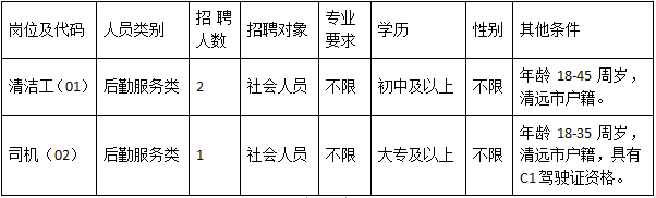 清遠(yuǎn)市清城區(qū)機(jī)關(guān)事務(wù)管理局因工作需要,根據(jù)《關(guān)于印發(fā)<清遠(yuǎn)市清城區(qū)機(jī)關(guān)事業(yè)單位專(zhuān)項(xiàng)工作聘員、合同制聘員以及后勤服務(wù)類(lèi)人員管理辦法>的通知》(城區(qū)人社〔2022〕20號(hào))文件精神,面向社會(huì)公開(kāi)招聘后勤服務(wù)類(lèi)人員3名,現(xiàn)將有關(guān)事宜公告如下: