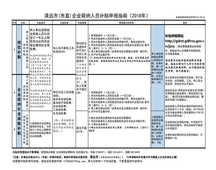 清遠(yuǎn)市(市直)企業(yè)吸納人員補(bǔ)貼申報指南(2018年)