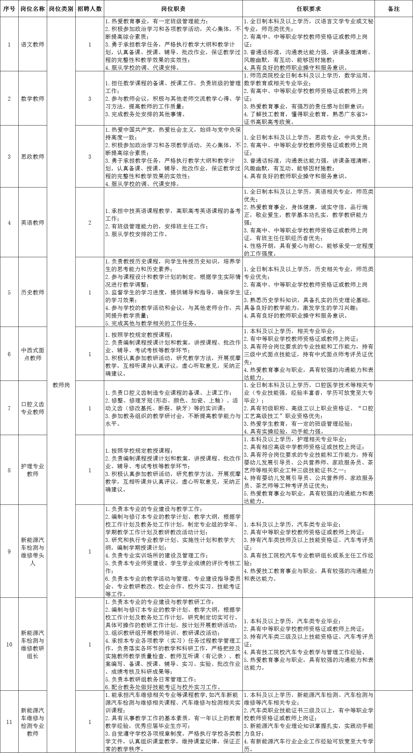 清遠市南方技工學校2025年上半年教職工招聘公告
