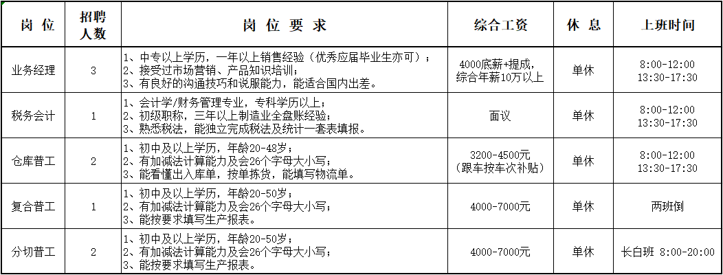 3、各類(lèi)獎(jiǎng)金補(bǔ)貼:高溫補(bǔ)貼、工齡補(bǔ)貼(上不封頂)、師帶徒獎(jiǎng)、介紹費(fèi)(在職員工推薦新員工入職獎(jiǎng)勵(lì)1900元/人)、全勤獎(jiǎng);